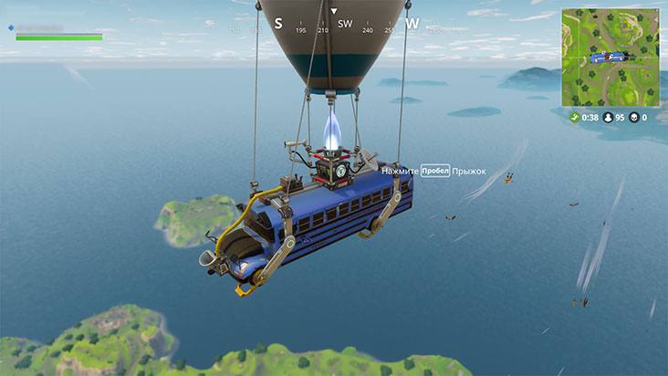 Если вы никогда не играли в Battle Royale, то знайте, что это режим на выживание. Начинается игра, как мы уже сказали, с высадки 100 игроков, при этом стартуют они с такого прикольного школьного автобуса.
