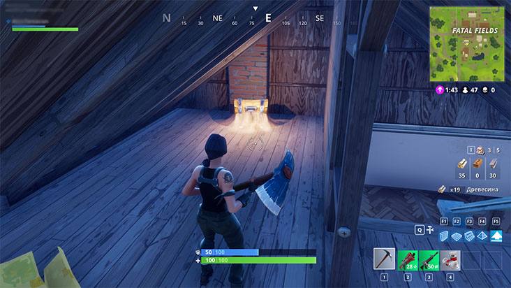 Те, кто является в Fortnite Battle Royale перебежчиком из PUBG, сразу заметят, что карта в Fortnite достаточно маленькая, наверное она меньше в 2, а в то и 3 раза. Это весьма сильно сказывается на самом процессе игры, ведь когда на близком друг от друга расстоянии высаживается порядка 10 человек, начинается такая мясорубка, что мама не горюй. В таких ситуациях нужно как можно скорее найти хоть какое-то орудие для уничтожения врагов, так как толпа недоброжелателей сама по себе не рассосется.