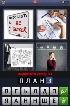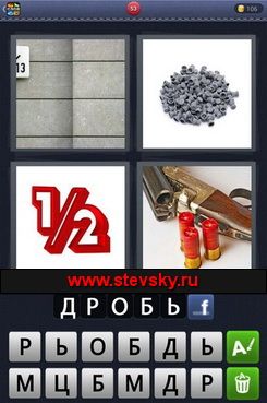 Внимание: задания в игре идут в произвольном порядке, поэтому номер вопроса в вашей игре и номер ответа здесь могут не совпадать! Однако на этом сайте есть ВСЕ ответы на игру 4 фото 1 слово и нужно просто поискать получше! Ищите свой ответ, внимательно просматривая варианты!