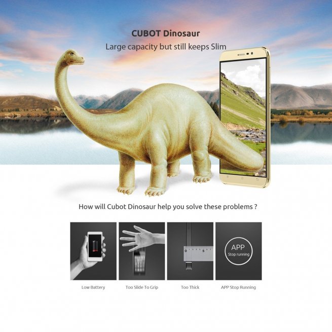 Однако можете не переживать, смартфон не болеет этой болячкой и справляется со своей задачей на ура - картинка выглядит здорово, ярко и сочно под любым углом. Производительность Cubot Dinosaur находится на бюджетном уровне и не удивит пользователя своими характеристиками: четырехъядерный чип Mediatek MT6735A, 1,3 ГГц и 3 ГБ оперативки, 16 пользовательской. В синтетическом тесте Антуту - 30 000 очков. Для комфортного сёрфинга в интернете и стабильной работы интерфейса системы будет достаточно. Камеры у Cubot Dinosaur паршивые, однако данный смартфон и не позиционируется как камерофон: честные 8 МП и 2 МП на фронтальном модуле вы получите. Работать Cubot Dinosaur от одной зарядки сможет достаточно долго - два, а, может, и три дня, так как начинка гаджета не требовательная, а аккумулятор стоит на 4 100 мАч. Работает смартфон на чистом Андроид 6.0.1 без сторонних прошивок. Свой отзыв об смартфоне Cubot Dinosaur мы оставим в виде его плюсов и минусов.