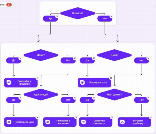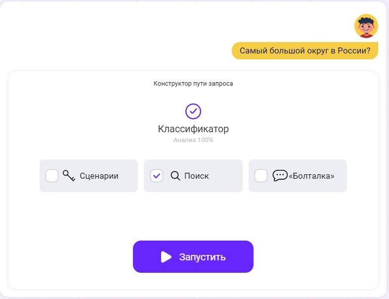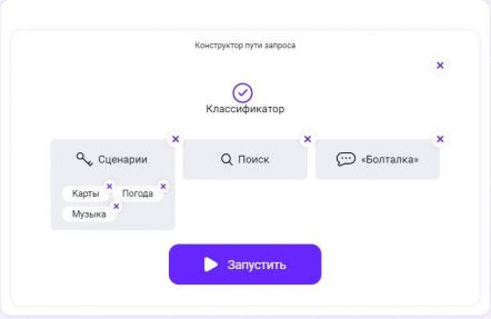 Теперь нам предстоит собрать из блоков конструктор пути запроса. Нужно собрать конструктор так, чтобы голосовой ассистент выдал подходящий ответ на заданный вопрос. Необходимо добиться уровня удовлетворенности в 99%. Наше виденье ситуации следующее.