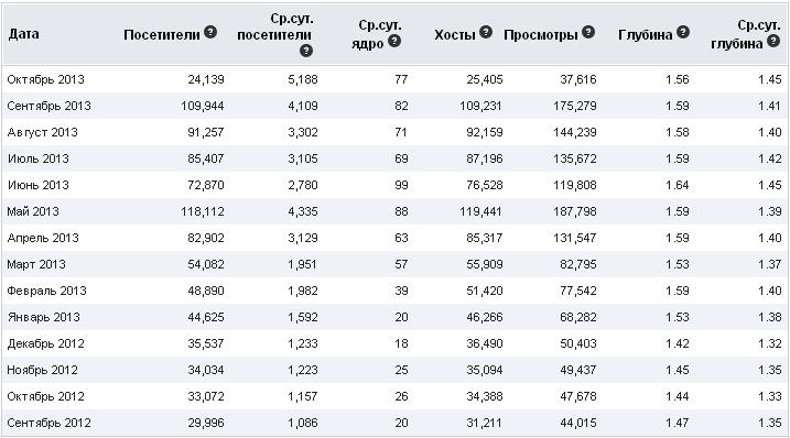 Посещаемость сайта в 2013 году
