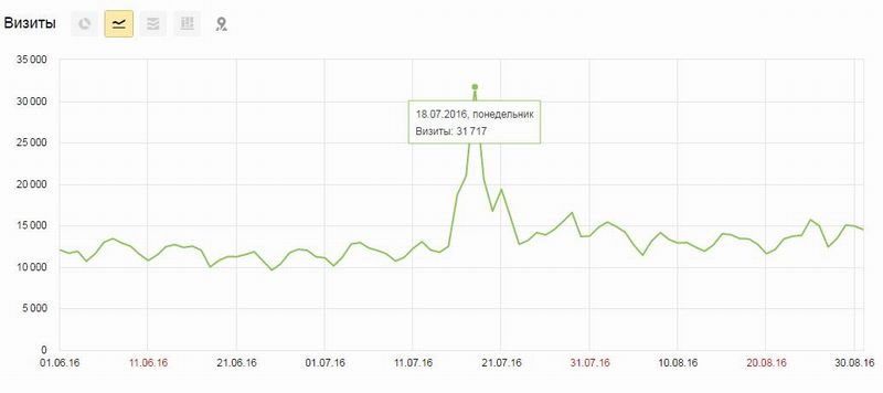 И вот лето кончилось, наступил сентябрь. Школьники отправились в школу, кто с тетрадками, а кто и с мобильником, а родители ринулись в интернеты читать про ожидаемые в сентябре новинки. Ещё за несколько дней до официальной презентации нового iPhone 7 сайт разрывали запросами типа айфон 7 фото дата выхода цена в России 2016, и написанный аж в феврале 2016 года преданонс с перечнем утёкших данных о новинке ломился от посетителей. Логичным было спрогнозировать дальнейший рост популярности запроса на дату анонса и я не ошибся: 7 сентября, в день официальной презентации iPhone 7, сайт получил рекордное число посетителей за последние пару месяцев, преодолев отметку в 17000 визитов. Достигнет ли запрос пика, как это было с iPhone SE в марте, и как долго продлится повышенный спрос - угадать трудно, но я надеюсь, что своевременная грамотная подача материала позволит удержаться на этой волне как можно дольше.