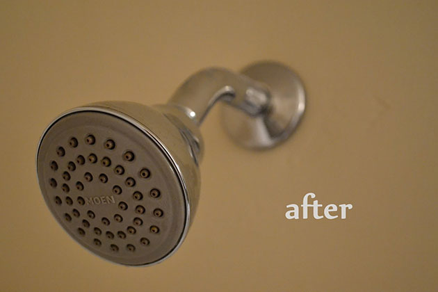 Чтобы вернуть изначальный вид душевой лейке, покрытой известковым налетом, возьмите пакет, канцелярскую резинку и немного уксуса. Наполните пакет уксусом, наденьте его на лейку, зафиксируйте все резинкой и оставьте в таком положении на час - полтора. Результат вас обрадует.