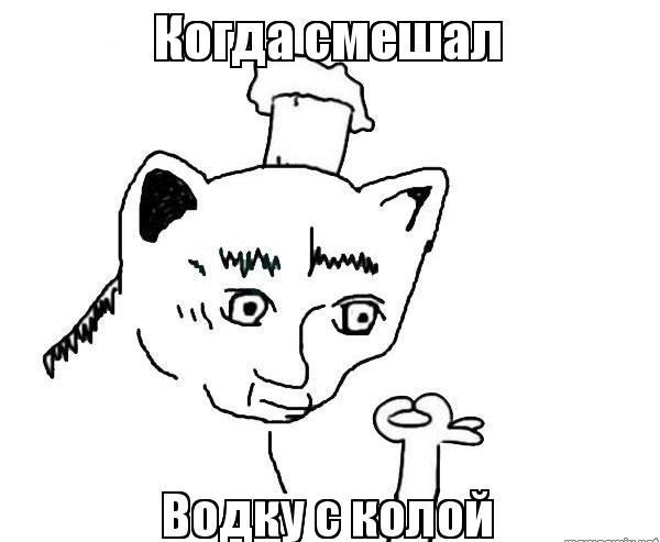 Картинка с котом-поваром, который называет шедевром простые блюда, не требующие практически никаких знаний для их приготовления. Хотя водка с колой заманчивое предложение, все же лучше водку с пивом, иначе деньги на ветер.