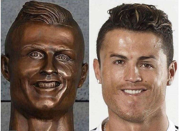 На родине Криштиану футболисту местные власти установили памятник в виде бюста, который получился очень смешным из-за криворукого исполнения. Пользователи соцсетей и СМИ активно понесли новость, что позволило родиться очередному мему.