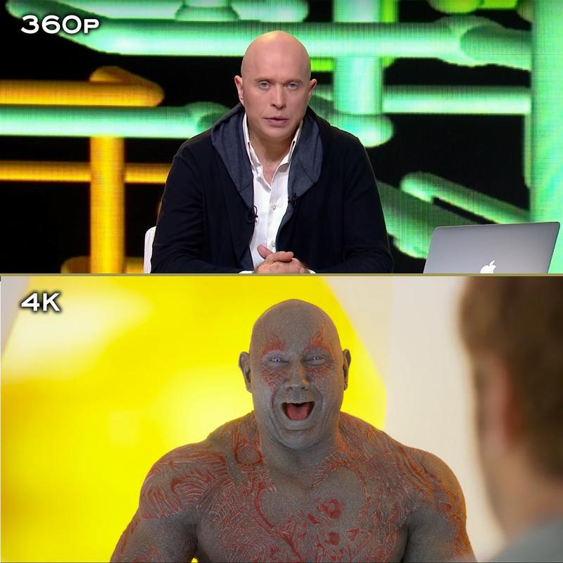Тут все просто - создатели картинок высмеивают огромную разницу в качестве изображения между разрешениями 144р и 4К.