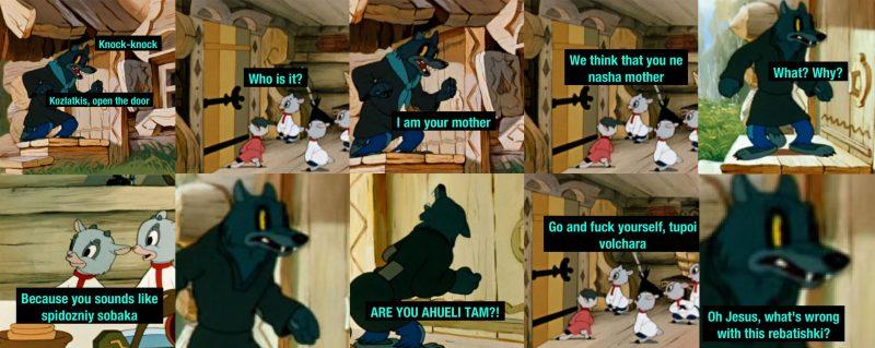 Данный мем очень порадовал публику тем, что все высказывания в подобного рода мемасах писались на английском, а точнее на ломаном английском языке. В большинстве случаев в качестве картинки использовались скриншоты из мультфильмов, а половина слов были русскими, но написанными на иностранном языке.