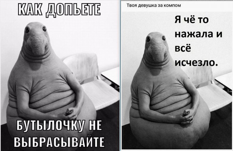 Ждун до сих пор является актуальным мемасом, поскольку это уже достояние общественности. Картинка с морским слоном очень точно описывает человека, который постоянно чего-то ждет. Например, когда вы устроились на работу и спрашиваете в первый день, что нужно делать. Родился мем благодаря скульптуре Homunculus Loxodontus художницы Маргрит ван Брифорт. Честно говоря, это один из лучших мемов нынешнего года.
