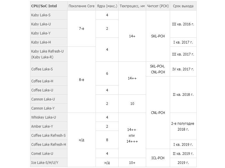 Таблица выхода процессоров Intel на ближайшее время