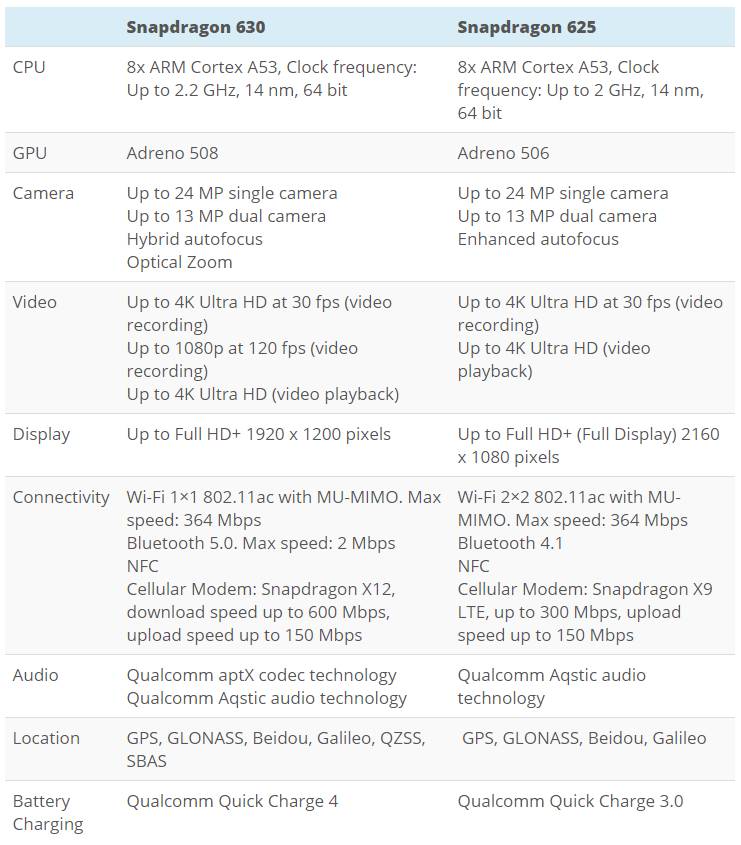 Снапдрагон 630 против Снапдрагон 625 - главные отличия