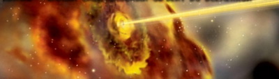 По одной из теорий, квазары представляют собой галактики на начальном этапе развития, в которых сверхмассивная чёрная дыра поглощает окружающее вещество.