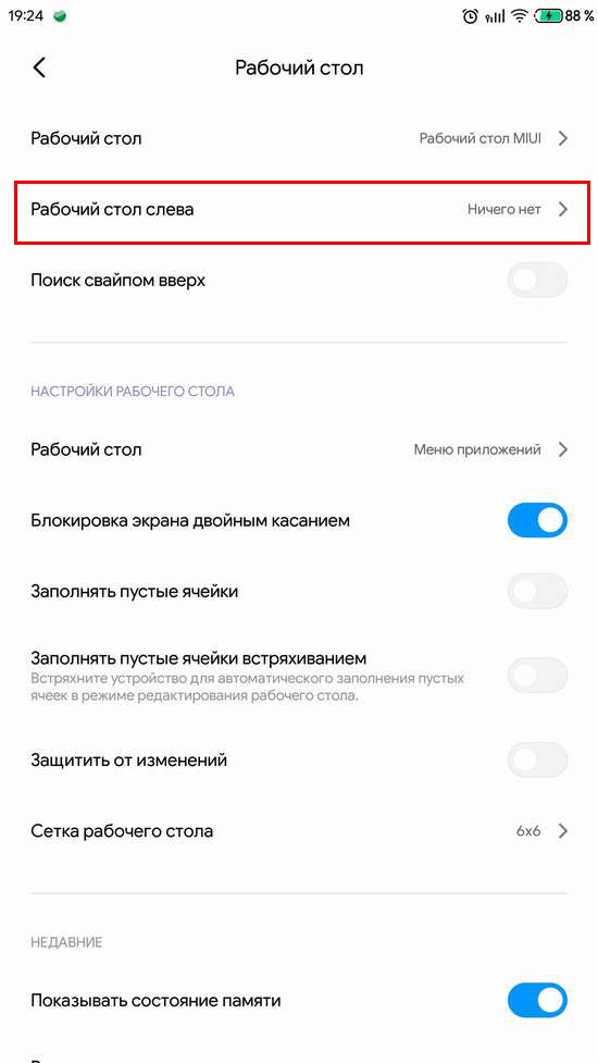 Отключение левого меню (виджета) на рабочем столе MIUI 11