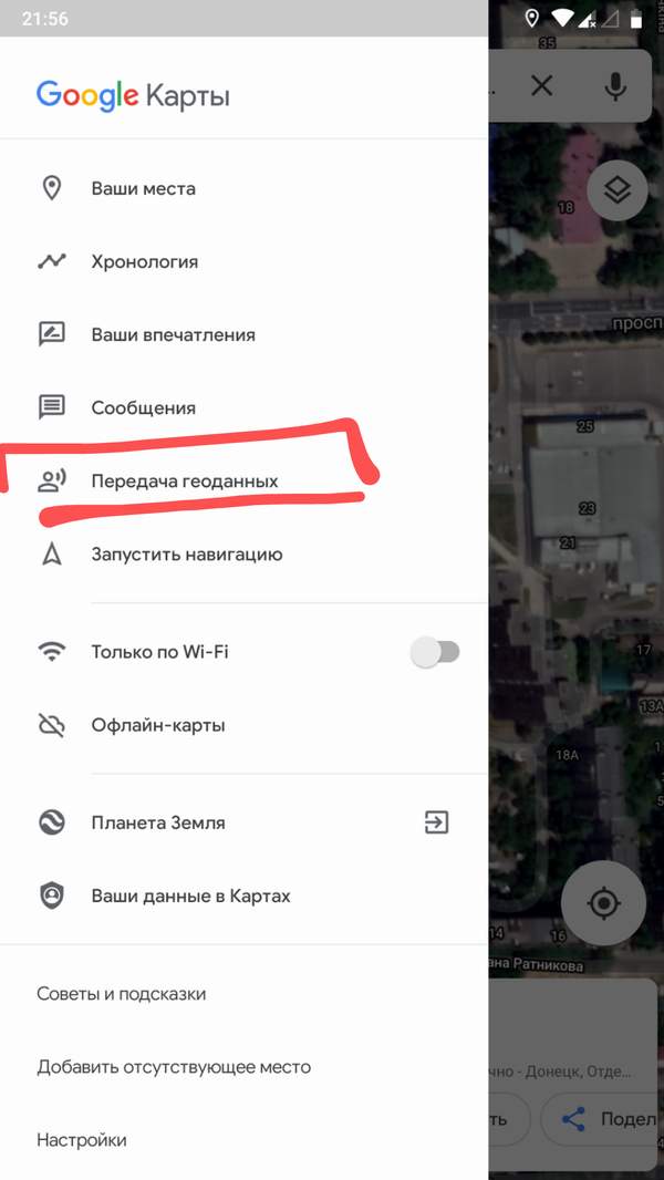 Доступ к этой функции можно получить, перейдя к значку "три полосочки", расположенному рядом с панелью поиска. Теперь выберите опцию "Передача геоданных" из меню и выберите время и людей, с которыми вы хотите поделиться этим местоположением.