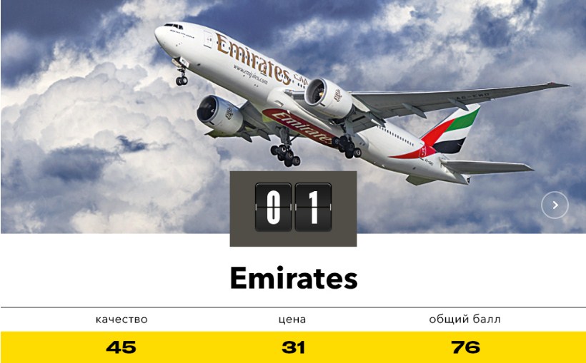 Первая позиция вряд ли вызовет какие-то кривотолки - "Emirates" уже который год подряд остается на лидирующих позициях. Созданная на шальных нефтяных деньгах в 1985 г. с внедрением европейских топ-менеджеров, авиакомпания из Эмиратов нынче обладает крупнейшем парком широкофюзеляжных Airbus 380 и Boeing 777, последние правда, не встретить в небе Европы. В конце марта последует финансовой отчет, однако вряд ли изменилась тенденция к росту прибыли - за сезон 2015/16 это фантастические 2,2 млрд долларов, что на 50% превышает предшествующий год. Компания вкладывает огромные средства в рекламу, так, надпись "Emirates Airlines" красуется на футболках Барселоны и Арсенала, выступает спонсором крупных спортивных состязаний Старого Света. При этом финансовые запросы по отношению к пассажирам остаются вполне адекватными, что, с учетом обширнейшей паутины рейсов и максимально комфортными условиями, позволило вознести авиакомпанию на первое место. 45+31=76