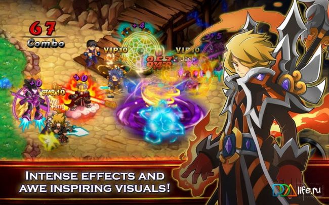 Игровой мир Brave Trials на андроид достаточно большой, однако так просто вы по нему не прогуляетесь. Вам будет доступна лишь одна адресная отправка, где необходимо будет выполнить какое-то задание. Весьма ограничен и размер локаций, а вот плотность неприятелей на один метр квадратный частенько просто зашкаливает. Если зайти в город, можно будет не только отхватить очередную миссию, но и поговорить с другими геймерами, приобрести оружие и прикупить нужные вам вещи. «Фишка» игры в том, что вместе с игровым персонажем всюду ходят его питомцы (дракон, джин и другие существа). Они всегда готовы прийти на помощь, отбивая нападения противников. Хотя не стоит думать, что ваш воин слабак, в его арсенале есть немало полезных заклинаний и навыков, чтобы убить толпу неприятелей и самого опасного босса.