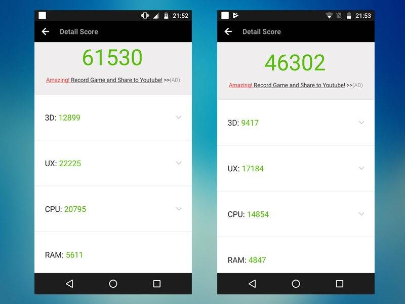 В свою очередь Moto G5S Plus предлагает уже более серьезное решение Snapdragon 625. Он также 8-ядерный, но не имеет разделения этих самых ядер на блоки, что позволяет им всем скопом разгоняться до 2,02 ГГц. В паре с видеоускорителем Adreno 506 любые игры на Moto G5S Plus будут летать, в этом даже не стоит сомневаться. Antutu тому подтверждение - 61500 баллов.